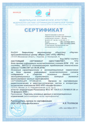 Сертификат о соответствии требованиям технического задания системы приема и регистрации телеметрической информации, устанавливаемой на борт МКС |